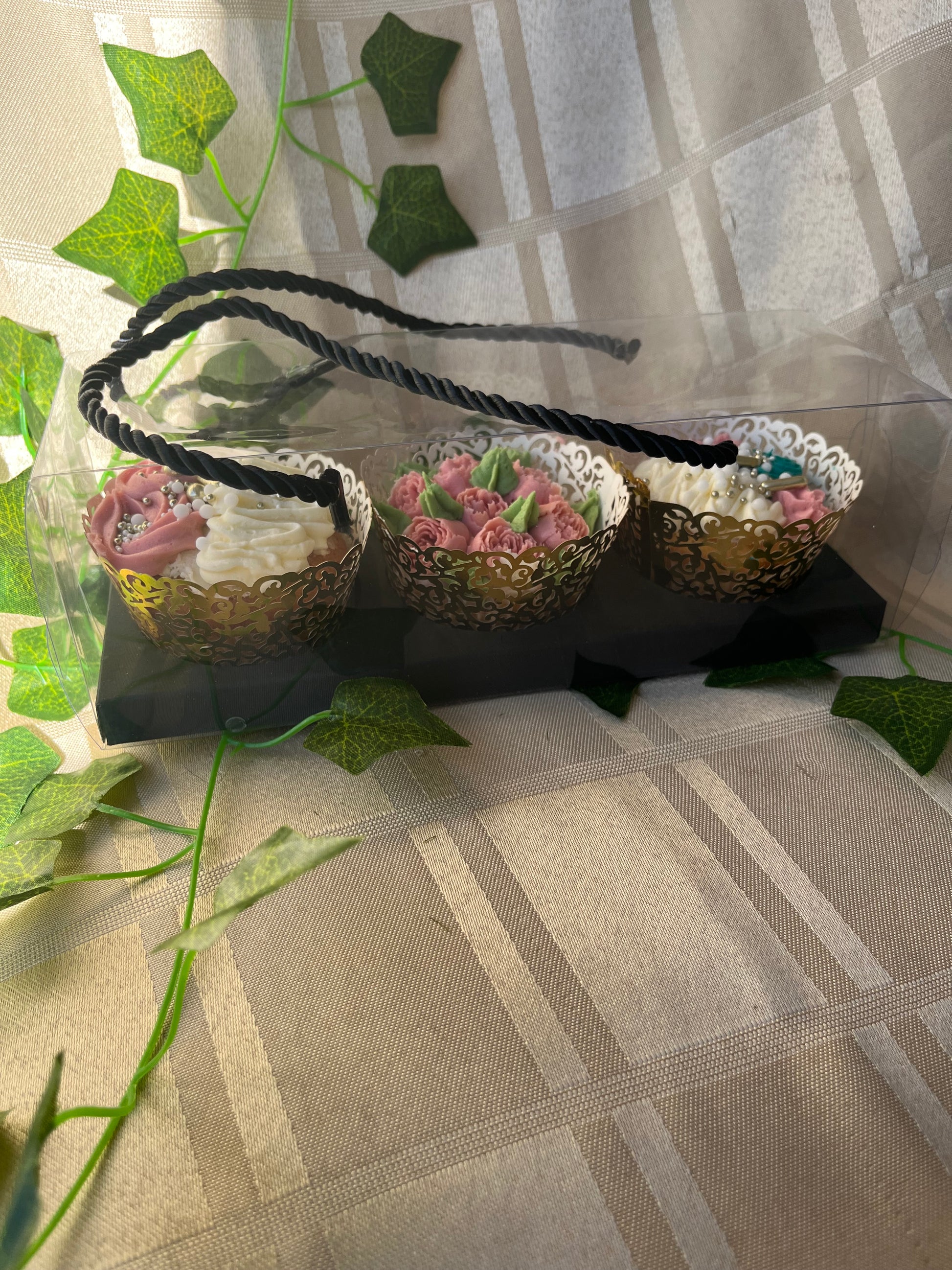 Luxury 3 Hold Cup Cake Box With Rope-Black
