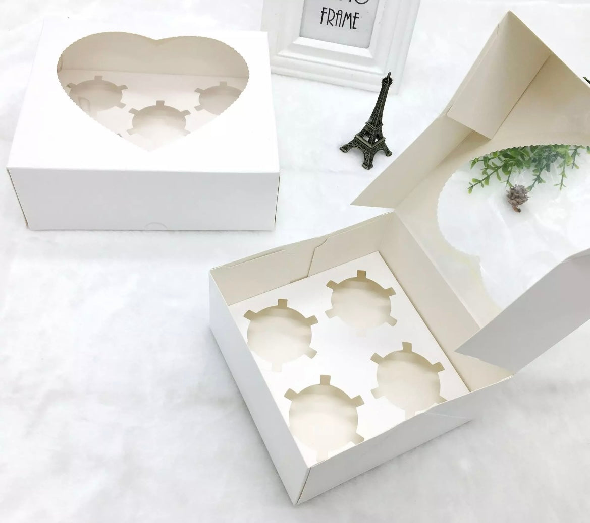 Boxes have a scalloped Heart Shaped Clear Window so your stunning cupcakes can be showcased.